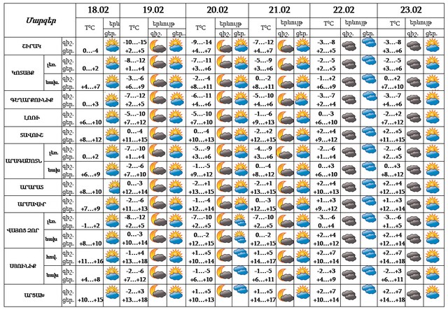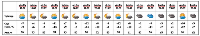 Օդի ջերմաստիճանը փետրվարի 18-21-ին ցերեկն աստիճանաբար կբարձրանա 4-6 աստիճանով։
