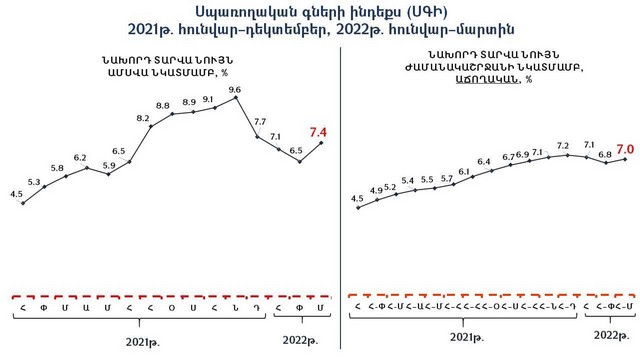 Սպառողական գների ինդեքսը 2022թ․ մարտին նախորդ տարվա մարտի համեմատ կազմել է 7.4%