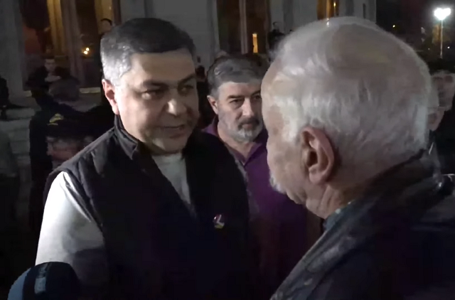 Ապա ԱԺ «Պատիվ ունեմ» խմբակցության ղեկավար Արթուր Վանեցյանը, որը մի պահ զրույցի էր բռնվել ցուցարարների հետ, հանկարծ մոտեցավ եւ ձեռքը սեղմեց մի տարեց տղամարդու՝ ասելով․ «Այ ցավդ տանեմ, ախր ես քեզ էի ուզում այդտեղից հանել»։ Հավանաբար, Վանեցյանը նկատի ուներ 20:00-ի մոտ պատահած միջադեպը, որի ժամանակ ոստիկանները քաշքշել էին ցուցարարներին։ Պարզվեց, որ տղամարդը ԵՊՀ արեւելագիտության ֆակուլտետի պրոֆեսոր, արեւելագետ, Արցախի պաշտպանության բանակի գնդապետ Գուրգեն Մելիքյանն է։