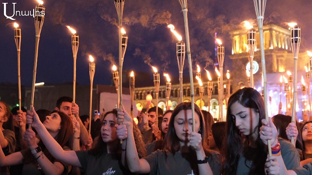Ժամեր առաջ Հանրապետության հրապարակից մեկնարկել է Ջահերով երթը՝ «Զարթնի՛ր, լաո» խորագրով։