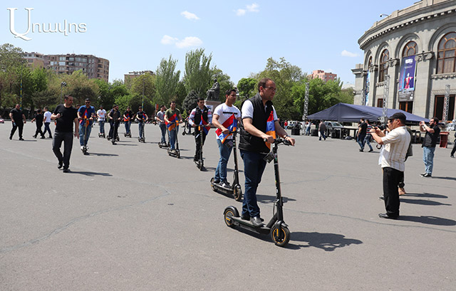 Ազատության հրապարակում «Հայրենիք» կուսակցության անդամները էլեկտրական սկուտերներով ակցիա էին իրականացնում: Նրանք եռագույն դրոշներ էին փակցրել սկուտերների վրա ու այն ծածանում էին Ազատության հրապարակում ու հարակից փողոցներում: Ակցիային մասնակցում էր Արսեն Բաբայանը, Սոս Հակոբյանը եւ այլ կուսակցականներ: