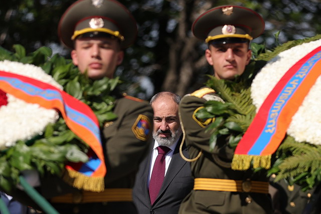 Այսօր ՀՀ վարչապետ Նիկոլ Փաշինյանը, ՀՀ նախագահ Վահագն Խաչատուրյանը, ԱԺ նախագահ Ալեն Սիմոնյանը, կառավարության անդամները, ՔՊ-ական պատգամավորներն այցելել են «Հաղթանակ» զբոսայգի՝ ուժեղացված անվտանգությամբ: Կառավարության ղեկավարն ու անդամները, իշխանության ներկայացուցիչները Հայրենական պատերազմում զոհվածների հիշատակը հավերժացնող հուշարձանի մոտ հարգանքի տուրք են մատուցել զոհերի հիշատակին: Արարողությանը ներկա են եղել նաեւ ՀՀ-ում հավատարմագրված տարբեր երկրների դեսպաններ: