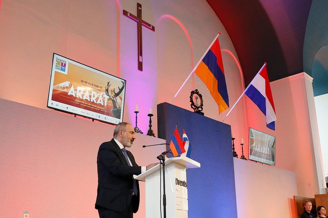 Այնուհետև վարչապետ Փաշինյանը մասնակցել է Նիդերլանդների Թագավորության Ասեն քաղաքի Դրենցի թանգարանում «Արարատի ստվերի ներքո. Հին Հայաստանի գանձերը» ցուցադրության պաշտոնական բացման արարողությանը: Միջոցառման բացման արարողությունը տեղի է ունեցել Ասենի Ժոզեֆ եկեղեցում՝ Նիդերլանդների «Աբովյան» մշակութային միության մասնակցությամբ: Նաև ելույթ է ունեցել Դրենցի թանգարանի տնօրեն Հարրի Թյուպանը, ով նշել է, որ ցուցադրությունը նախատեսված է եղել դեռ 2020-ին, սակայն կորոնավիրուսի համավարակի պատճառով հետաձգվել է: