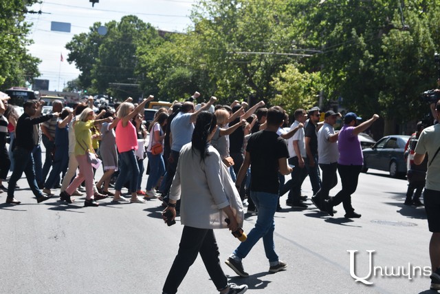 Այս հայտարարությունից հետո քաղաքացիները ՀՀ գլխավոր դատախազության դիմացի փողոցը փակեցին: Նրանք ծխարձակող ճայթուկներ բաց թողեցին: Այնուհետև երիտասարդները նստացույց արեցին, որին հաջորդեց քաղաքացիների երթը: