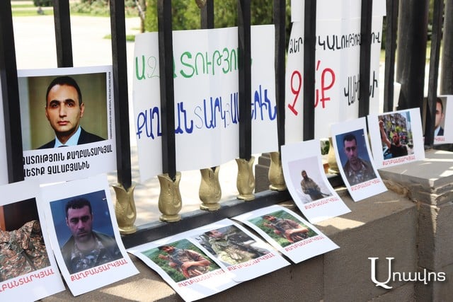 Ցույցի մասնակիցները ԱԺ դարպասների մոտ թողեցին նաեւ անազատության մեջ գտնվող «Համախմբում» շարժման անդամներից Ավետիք Չալաբյանի լուսանկարը:
