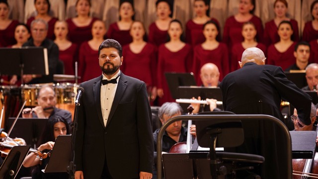 – Այս անգամ Հայաստանի ազգային ակադեմիական երգչախմբի ցանկությունն էր՝ որպես երկար տարիների մի մասնիկ այս կոլեկտիվի, վերջինիս հիմնադրման 85-ամյակի կապակցությամբ ներկա գտնվեմ։ Հոբելյանական երեկոյին որպես մեներգիչ մեծանուն մաեստրո Հովհաննես Չեքիջյանի ղեկավարությամբ մասնակցեցի Վերդիի «Ազգերի հիմնը» ստեղծագործության մեկնաբանմանը։ Տեսեք՝ այս ստեղծագործությունում հանճարեղ Վերդին դեռ երկու դար առաջ անդրադարձել է միասնական Եվրոպայի գաղափարին, որտեղ մեներգիչը կատարում է Իտալիայի հիմնը, երգչախումբը՝ Մեծ Բրիտանիայինը, իսկ նվագախումբը՝ Ֆրանսիայի օրհներգը։ Ու պատկերացնո՞ւմ եք՝ երեք հիմների համադրությունը հնչում է միաժամանակ…
