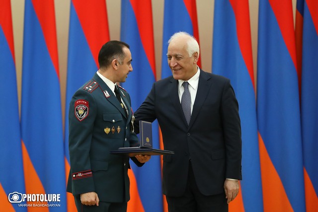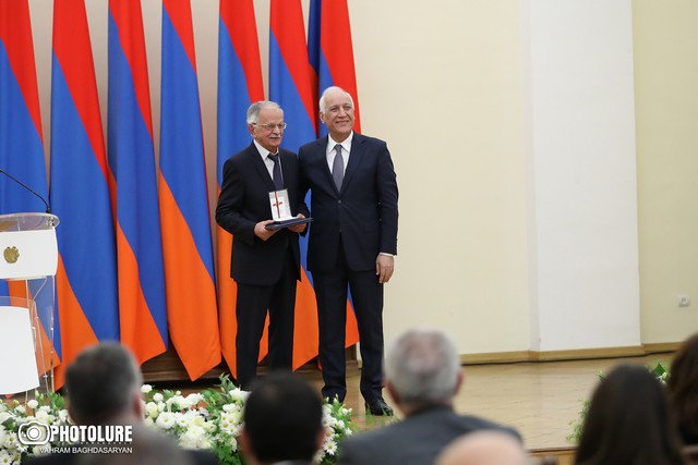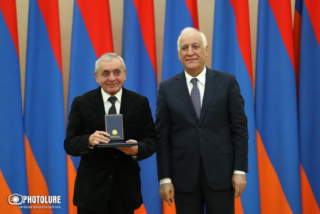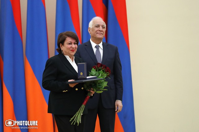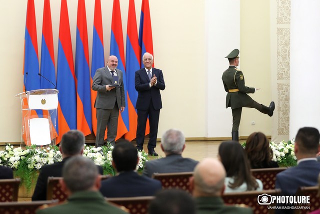 Նախագահի նստավայրում տեղի ունեցած պարգևատրման հանդիսավոր արարողության ժամանակ նախագահ Վահագն Խաչատուրյանը հանձնել է պետական բարձր պարգևները: