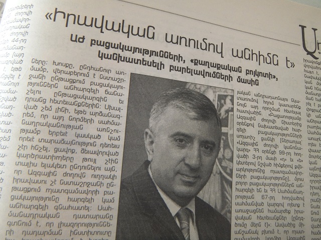 ՀՀ գլխավոր դատախազություն է ստացվել «Հայ ազգային կոնգրես» կուսակցության փոխնախագահ Լեւոն Զուրաբյանի «Հանցագործություն կատարելու մասին» հաղորդումը: Ինչպես «Փաստինֆո»-ին հայտնեցին ՀՀ գլխավոր դատախազությունից, դիմումին օրենքով սահմանված կարգով ընթացք կտրվի: ՀԱԿ ներկայացուցիչները ՀՀ գլխավոր դատախազ Աղվան Հովսեփյանին խնդրում են պարզել «Տարոն Մարգարյանի կողմից ներկայացված հայտարարագրում գույքի իրական բնույթի, ծագման աղբյուրների, գտնվելու վայրի, տնօրինման եղանակի, տեղաշարժի, իրավունքների կամ պատկանելության կամ գույք ձեռք բերելու կամ տիրապետելու կամ օգտագործելու կամ տնօրինելու օրինականությունը, դրանց ձեռքբերման կապը կոռուպցիոն երեւույթների, մասնավորապես, «ատկատների» կամ հանցավոր ճանապարհով ստացած եկամուտների իրականացման հետ»: