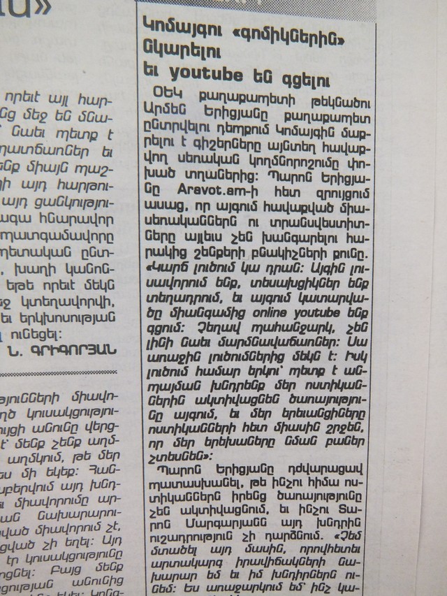Վաղը ՀՀ վարչական դատարանը որոշում կկայացնի՝ բավարարե՞լ «Բարեւ Երեւան» դաշինքի անդամ Դանիել Իոաննիսյանի հայցն ընդդեմ ԿԸՀ-ի, թե՞ մերժել այն: Հիշեցնենք, որ Դանիել Իոաննիսյանը դատարան էր դիմել՝ բողոքարկելով մի քանի օր առաջ ԿԸՀ-ի կայացրած որոշումը: Ըստ այդ որոշման, ապրիլի 7-ին Երեւանի քաղաքապետարանի կողմից հարկատուների հաշվին Մայրության եւ գեղեցկության տոնի առթիվ կազմակերպված միջոցառումը չէր համարվել ընտրական օրենսգրքի խախտում: Մինչդեռ, Դանիել Իոաննիսյանը համոզված է, որ տեսանյութը առավել քան ապացուցում է՝ ծաղիկները բաժանվում են Տարոն Մարգարյանի կողմից եւ քարոզչության նպատակ ունեն: