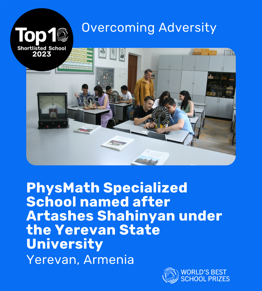 «Երևանի պետական համալսարանին առընթեր Արտաշես Շահինյանի անվան ֆիզիկամաթեմատիկական հատուկ դպրոցը 2023 թվականի աշխարհի 10 լավագույն դպրոցներից մեկն է ճանաչվել՝ ըստ աշխարհում ամենահեղինակավոր World’s Best School Prizes մրցույթի։ World’s Best School Prizes մրցույթին մասնակցում են ավելի քան հարյուր երկրների դպրոցներ, սակայն Հայաստանը ներկայացվում է մրցույթում առաջին անգամ։ Նման հեղինակավոր մրցույթի Հայաստանը հնարավորություն ստացավ մասնակցելու այն բանից հետո, երբ կրթության փորձագետ, Երիտասարդ գլոբալ առաջնորդ (2021 Young Global Leader) Սուրեն Ալոյանը 2022 թվականին համալրեց համաշխարհային World’s Best School Prizes մրցույթի լավագույն դպրոցների ընտրության ժյուրիի կազմը։