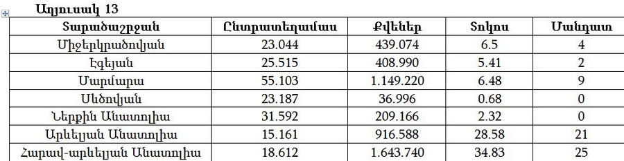 Աղյուսակ 6-ը ներկայացնում է 5 հիմնական դաշինքների ցուցանիշները ԹՀ տարբեր տարածաշրջաններում։