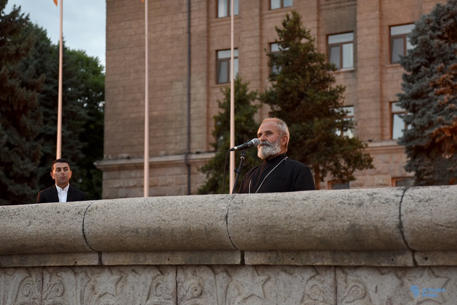 Սիրելիներ: Միասնականությունը ոչ թե խոսքով է, ոչ թե ֆիզիկական ներկայությունով է, այլ իրական միասնականությամբ, հոգատարությամբ, եւ սիրով: Նաեւ հույսով եւ բարի գործով է որոշվում: Միաբանության մեջ է լինելու մեր օրհնյալ ապագան: Եվ այս օրը, սիրելի արցախցիներ, պատահական օր չէ: Մենք նոր կատարեցինք Նախատոնակը եւ վաղվա տոնի՝ Վարդավառի, պայծառակերպության: Պայծառակերպությունը նշանակում է՝ պայծառակերպվել հոգով, սրտով, մարմնով, մտքով: Պայծառակերպենք մեր Արցախ Աշխարհը նորանոր հաջողություններով եւ հաղթանակներով»,-ասաց հոգեւոր հովիվը: