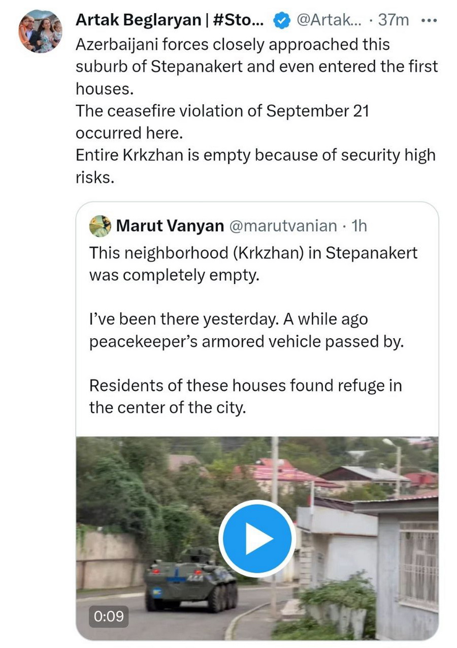 — Artak Beglaryan | #StopArtsakhGenocide (@Artak_Beglaryan) September 23, 2023