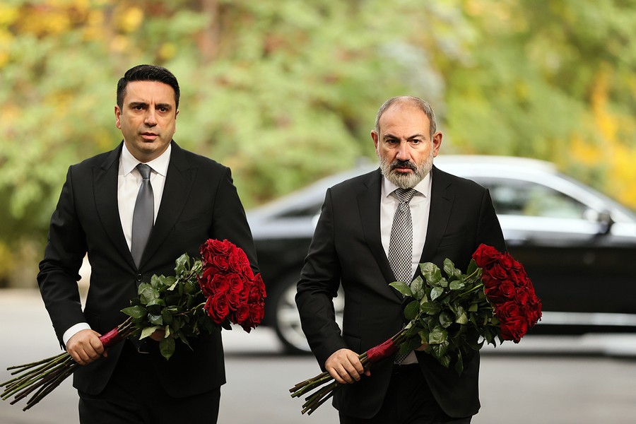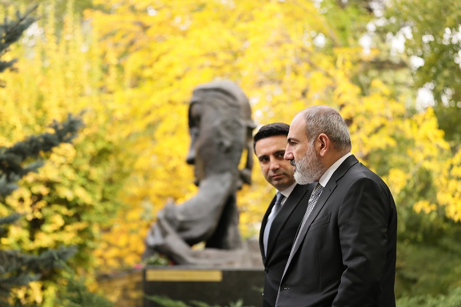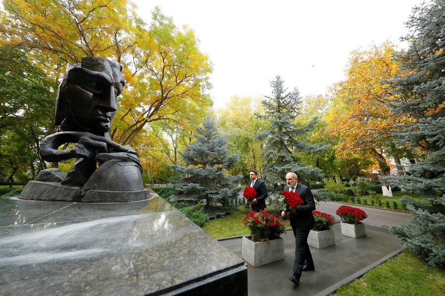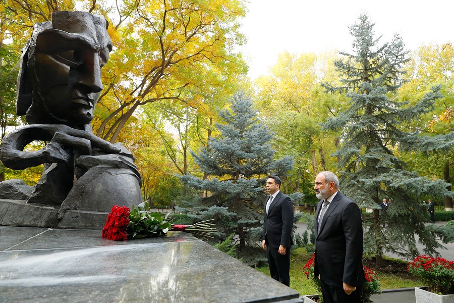 Վարչապետ Նիկոլ Փաշինյանն Ազգային ժողովի նախագահ Ալեն Սիմոնյանի հետ ծաղիկներ է խոնարհել ԱԺ այգում կանգնեցված հուշակոթողի մոտ և հարգանքի տուրք մատուցել 1999 թվականի հոկտեմբերի 27-ի ոճրագործության զոհ դարձած պետական և քաղաքական գործիչների հիշատակին: