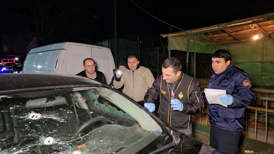 Կատարվել է դեպքի վայրի զննություն, որի ժամանակ «Ֆորդ» մակնիշի ավտոմեքենայում, բազմաթիվ գնդակային վնասվածքներով, հայտնաբերվել է 39–ամյա տղամարդու դին: Հայտնաբերվել է նաև ինքնաձիգի 20 պարկուճ, գնդակի 1 միջուկ, արնանման հետքեր։ Դեպքի վայրից շուրջ 300 մետր հեռավորության վրա հայտնաբերվել է նաև հանցագործության գործիք հանդիսացող «АК» տեսակի, 7,62 մմ տրամաչափի ինքնաձիգը՝ դատարկ պահունակով: Նշանակվել են դատաբժշկական, համալիր դատաձգաբանական, դատաքիմիական, դատահետքաբանական փորձաքննություններ: