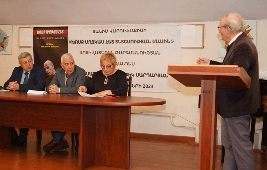 Գրքի երևանյան շնորհանդեսը տեղի ունեցավ այսօր՝ երեքշաբթի, Հայաստանի վետերանների միության դահլիճում։ Գայանե Աբգարյանի հանդիսավորությամբ ելույթ ունեցան ՀՀ առաջադիմական կոմունիստական կուսակցության քարտուղար Վազգեն Սաֆարյանը, ՀՀ արհմիությունների կազմակերպության փոխնախագահ Գեղամ Գալստյանը, Տիգրան Դավուդյանը և գրքի թարգմանիչ Ռուբիկ Սարդարյանը։