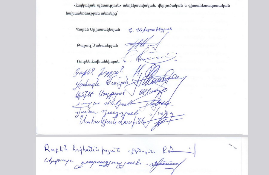 «Հայկական պետություն» տեղեկատվական, վերլուծական և գիտահետազոտական նախաձեռնության անունից՝