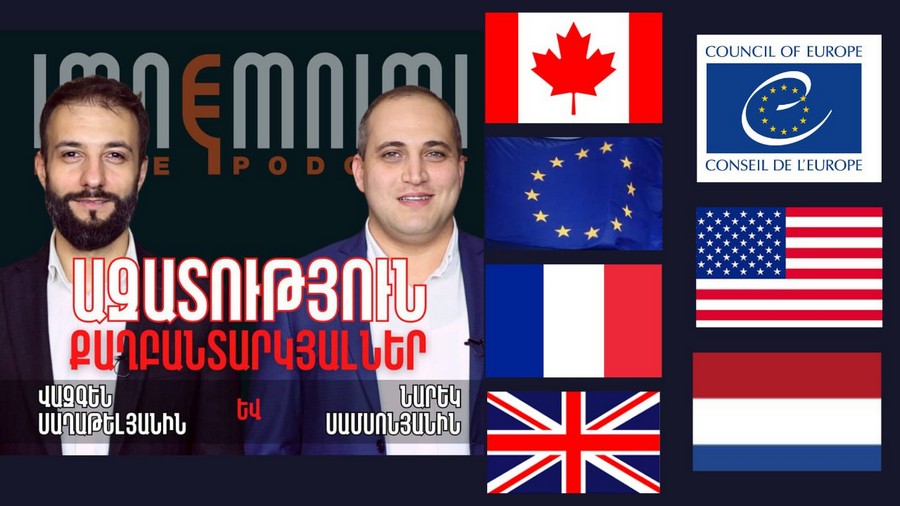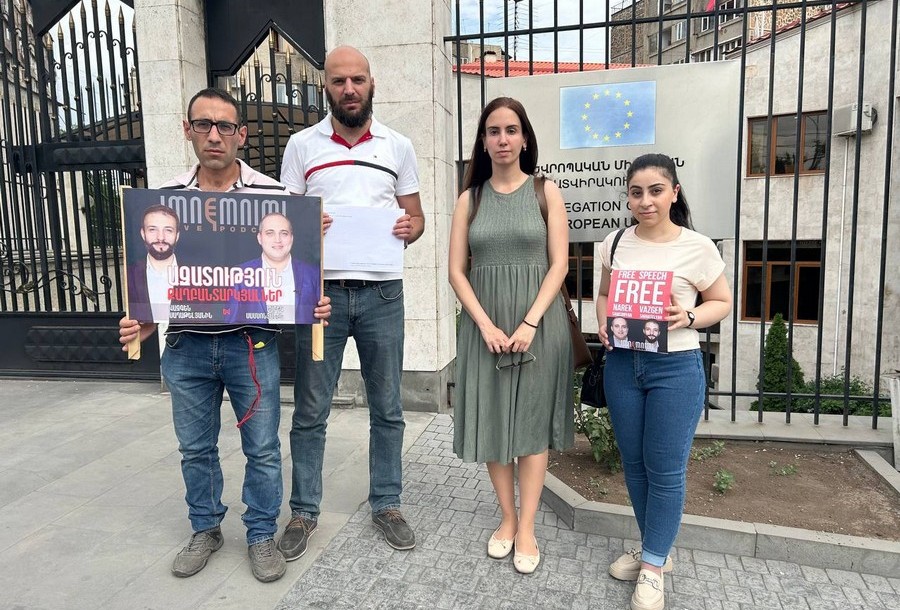 Նշվում է, որ հանրային գործունեությամբ զբաղվող Նարեկ Սամսոնյանն ու Վազգեն Սաղաթելյանը կալանավորվել են միջազգային կառույցների ջանքերով և ճնշման ներքո ապաքրեականացված և այժմ գոյություն չունեցող տխրահռչակ «ծանր վիրավորանքի» հոդվածի հիման վրա, որն իշխանությունները «վերակենդանացրել են» խուլիգանության հանցակազմի ներքո։