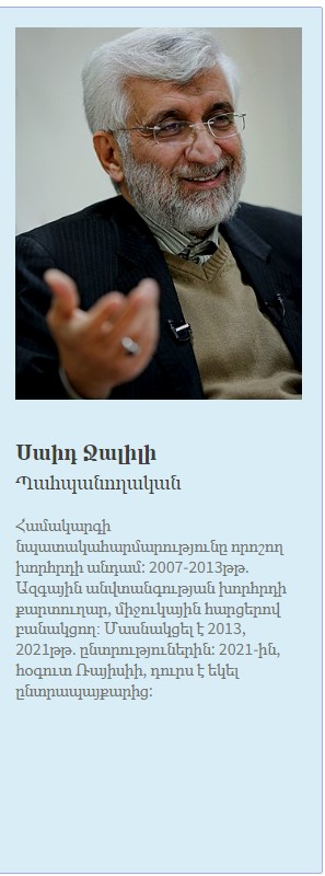 Այս անգամ էլ, կարծես, նույն սցենարն է սպասվում։ Փեզեշքիանից բացի, մյուս թեկնածուները կարող են պարզապես քող ծառայել այն մեկ թեկնածուի համար, որի շուրջ կհամախմբվեն պահպանողականները։ Այդ թեկնածուն էլ կարող է լինել Ղալիբաֆը։