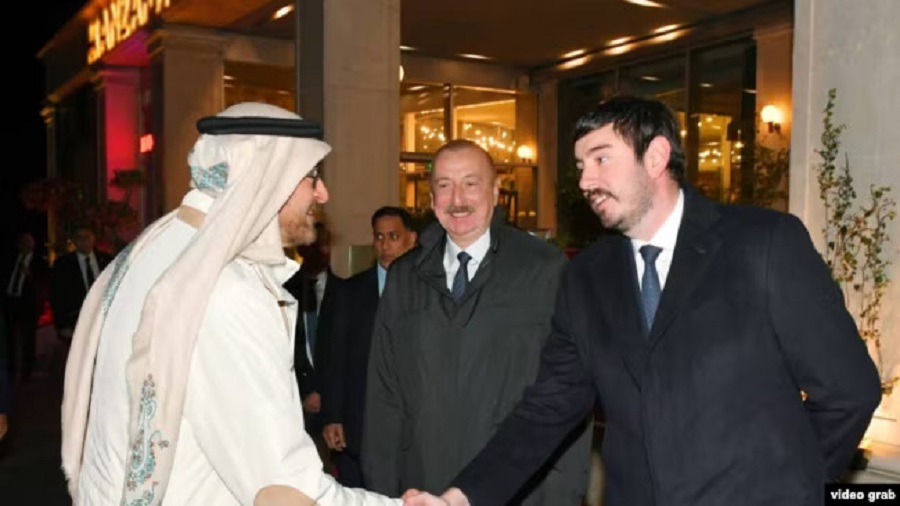 Տարեսկզբին Ադրբեջան էր այցելել Արաբական Միացյալ Էմիրությունների նախագահը, Իլհամ Ալիևի որդին պաշտոնական բոլոր միջոցառումների կենտրոնում էր, բարձրաստիճան պաշտոնյաների շարքում մասնակցում էր շեյխի հանդիսավոր դիմավորմանը, որպես պատվիրակության անդամ բարևում Էմիրությունների առաջնորդին, ապա նրան տեսնում ենք բանակցությունների սեղանի շուրջ, Հեյդար Ալիևը ներկա էր նաև պաշտոնական ընթրիքին՝ արտգործնախարար Բայրամովի և նախագահի օգնական Հաջևի կողքին։