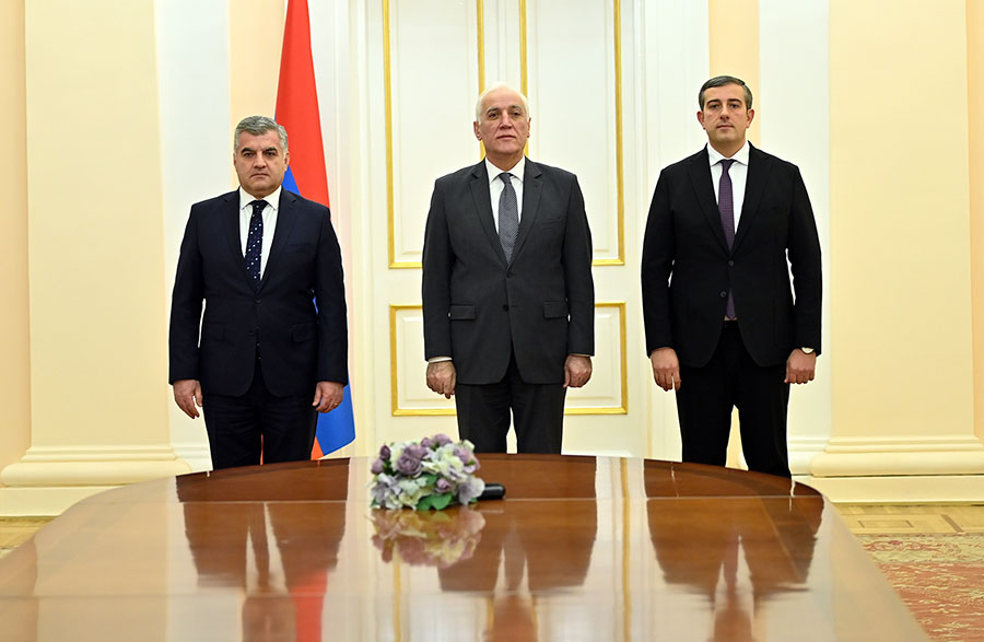 Հանրապետության նախագահ Վահագն Խաչատուրյանի մասնակցությամբ նախագահական նստավայրում տեղի է ունեցել Արագածոտնի մարզի առաջին ատյանի ընդհանուր իրավասության դատարանի դատավոր Դավիթ Դաբաղյանի, Արարատի և Վայոց ձորի մարզերի առաջին ատյանի ընդհանուր իրավասության դատարանի դատավորներ Գրիգոր Հարությունյանի, Վիրաբ Վարդանյանի, Արմավիրի մարզի առաջին ատյանի ընդհանուր իրավասության դատարանի դատավոր Գևորգ Մանուկյանի, Լոռու մարզի առաջին ատյանի ընդհանուր իրավասության դատարանի դատավոր Բարսեղ Մուրադյանի, Սյունիքի մարզի առաջին ատյանի ընդհանուր իրավասության դատարանի դատավոր Արթուր Ոսկանյանի երդման արարողությունը: