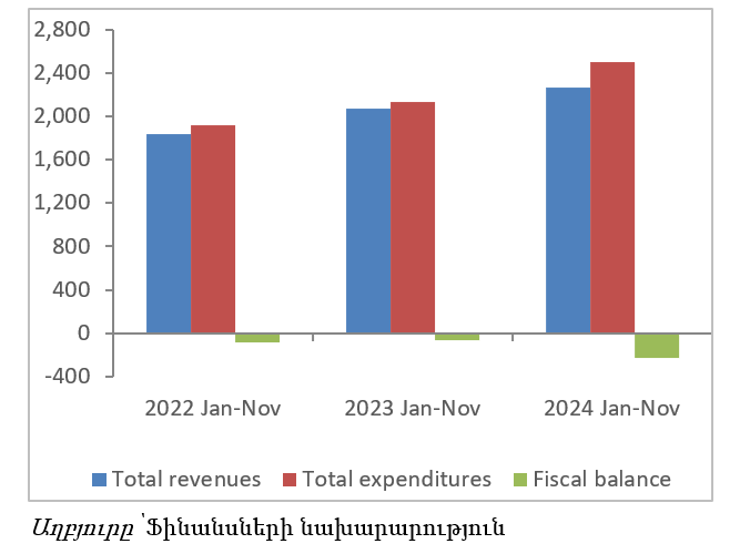 Պատկեր 6. Նոյեմբերը ներառյալ բյուջեում պակասուրդ գրանցվեց, սակայն 2024 թ․ կանխատեսումից ցածր