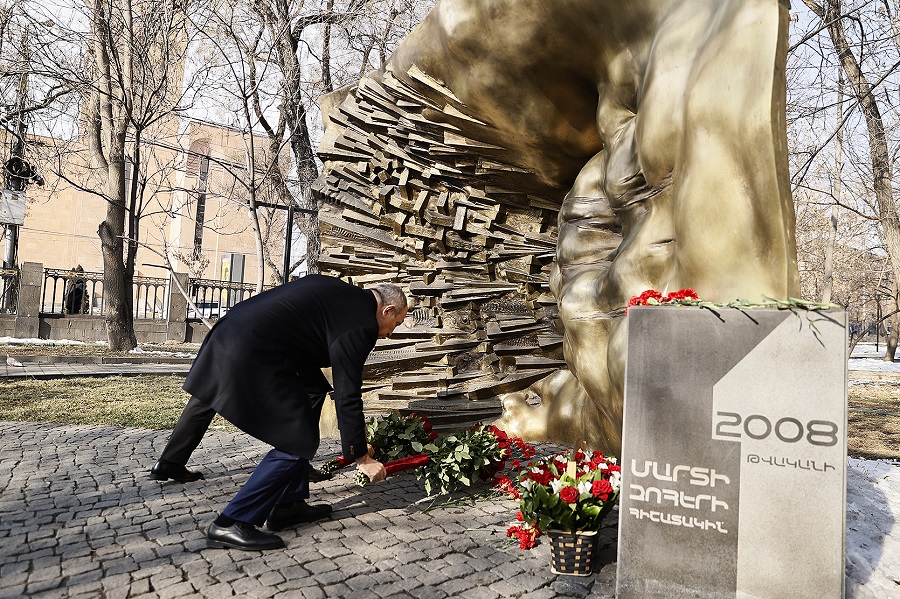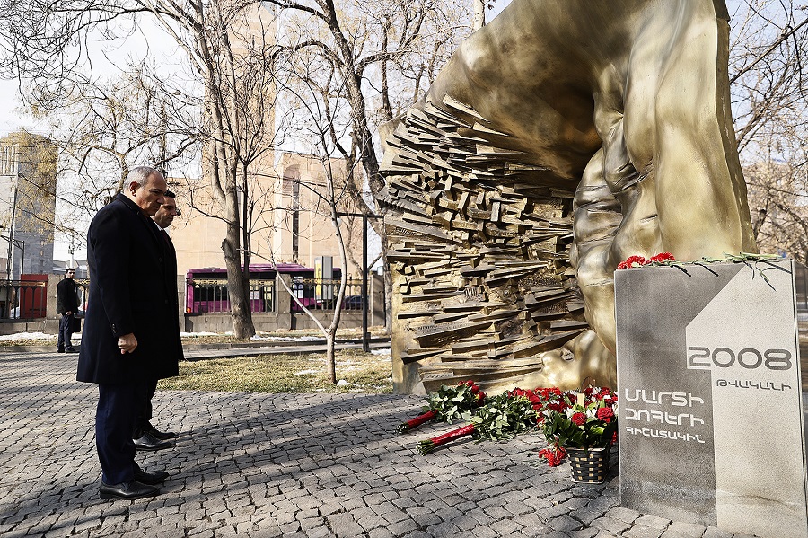 Վարչապետ Նիկոլ Փաշինյանը և ԱԺ նախագահ Ալեն Սիմոնյանը ծաղիկներ են խոնարհել Երևանի Գրիգոր Լուսավորիչ փողոցին հարակից այգում կանգնեցված «Ազդեցություն և հակազդեցություն» հուշարձանին՝ հարգանքի տուրք մատուցելով 2008 թ. մարտի 1-ի զոհերի հիշատակին:
