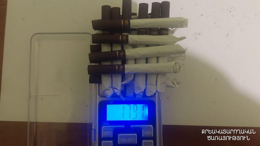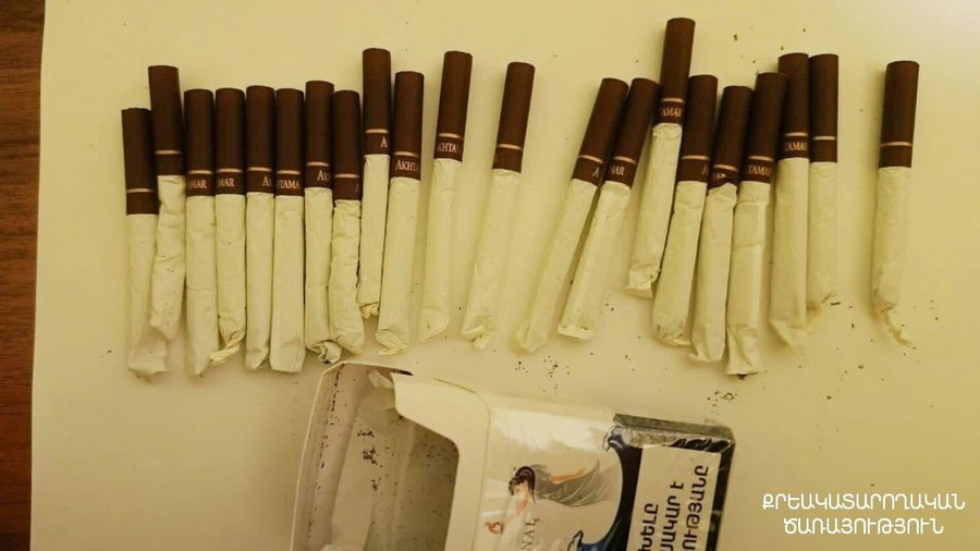 Վերջինիս անձնական իրերը խուզարկելիս՝ ծառայողները նկատել են, որ ծխախոտի տուփի գործարանային փաթեթավորումը խախտված է, իսկ տուփում առկա 21 գլանակները լցված են կանաչ, մանրացված բուսական զանգվածով։