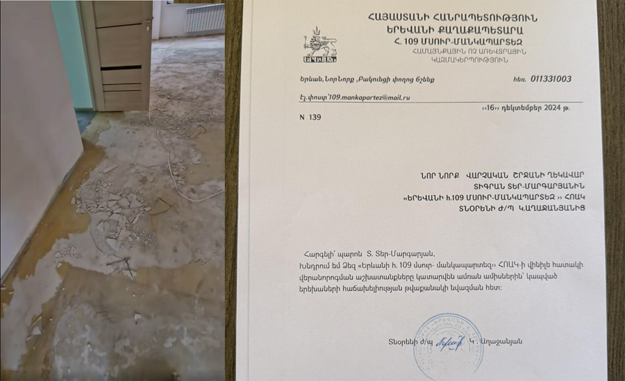 «Բլոգեր Արթուր Չախոյանը տեսանյութ է հրապարակել Երևանի քաղաքապետարանի կողմից հիմնանորոգված թիվ 109 մանկապարտեզի վերաբերյալ՝ նշելով, թե այն կրկին նորոգվում է։