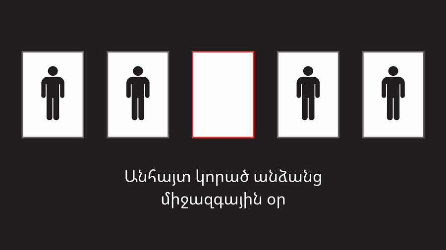 Օգոստոսի 30-ին ամբողջ աշխարհում նշվում է «Անհայտ կորած անձանց միջազգային օրը»։ Այն հռչակվել է ՄԱԿ-ի Գլխավոր ասամբլեայի կողմից 2010 թվականին՝ ընդգծելու պետությունների պարտավորությունը պարզելու անհայտ կորածների ճակատագիրն ու ապահովելու նրանց ընտանիքների իրազեկվածությունը։