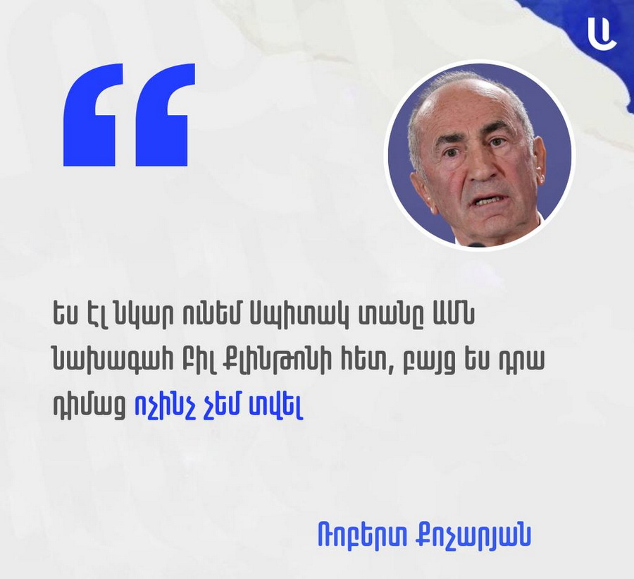 «Ի՞նչ է ստացել Հայաստանը, անկեղծ ասած՝ ես փորձել եմ այդ փաստաթղթերում գտնել որեւէ կոնկրետություն, զրո, միայն պրոբլեմներ։ Եվ վերջապես ի՞նչ է ստացել Նիկոլ Փաշինյանը՝ այստեղ շատ կոնկրետ բան։ Ստացել է մեկ նկար նախագահ Թրամփի ստորագրությամբ եւ ստացել է իրավական ուժ չունեցող մեկ թուղթ, որը հնարավորություն է տալիս եւս մեկ անգամ խաբել հայ ժողովրդին։ Ի՞նչ նախնական եզրակացություն կարելի է անել՝ Նիկոլ Փաշինյանը ԱՄՆ-ում եղել է դեկորացիայի դերում, այնտեղ եղել է սեղան, աթոռ, նկար կար, դրոշ կար եւ Փաշինյան կար»,- ասաց Քոչարյանը։