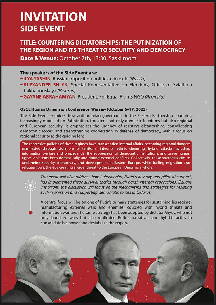 «ԵԱՀԿ համաժողովի շրջանակներում կազմակերպել էինք նաեւ հավելյալ միջոցառում` Ալիեւ-Պուտին-Լուկաշենկո դիկտատորների` տարածաշրջանին սպառնացող վտանգների մասին։