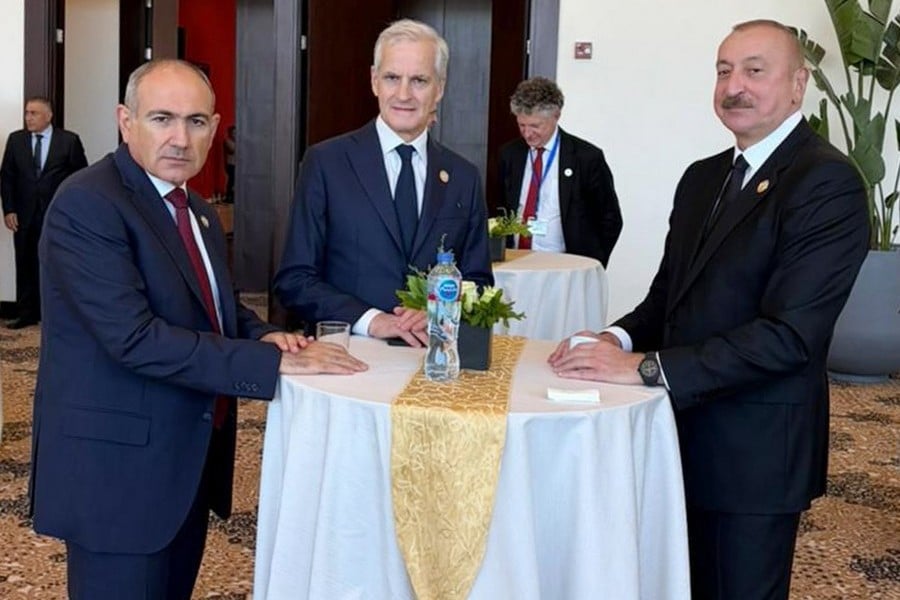 ՀՀ վարչապետ Նիկոլ Փաշինյանն ու Ադրբեջանի նախագահ Իլհամ Ալիևը կարճատև զրույց են ունեցել Եգիպտոսի Շարմ էլ Շեյխ քաղաքում ընթացող խաղաղության գագաթնաժողովի շրջանակում։
