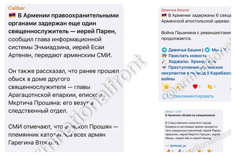 Հ. Գ. «Ադրբեջանական լրատվական ալիքները ցնծում են,- նշում է «Ազգային ճակատի» տելեգրամյան ալիքը՝ հրապարակելով լուսանկարներ: -Հայ Առաքելական Եկեղեցու դեմ իրականացվող քայլերը ցնծություն են առաջացրել Բաքվում»: