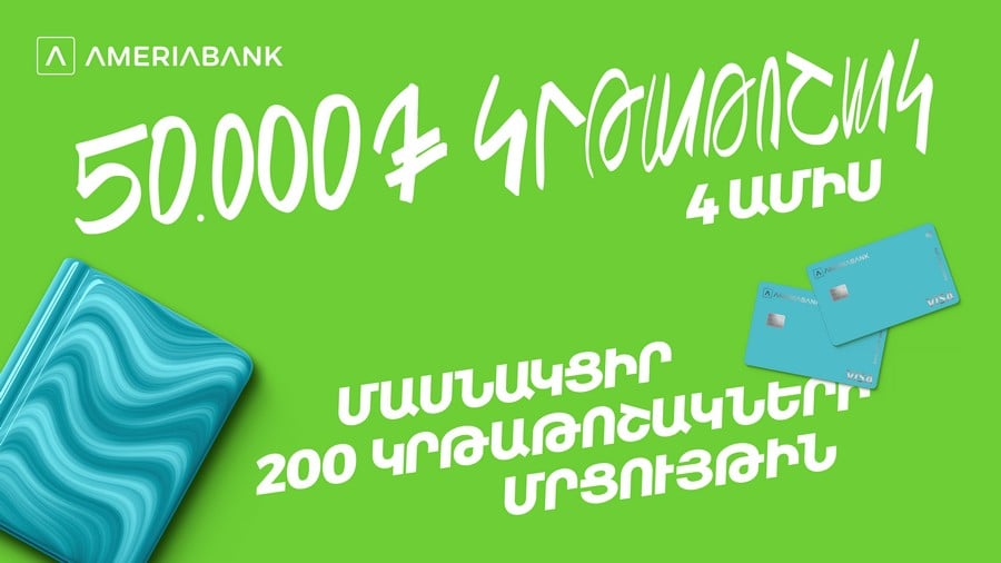 Ամերիաբանկը երկրորդ տարին անընդմեջ հայտարարում է «Իմ Հայաստան, իմ ապագա» կրթաթոշակների մրցույթ, որը նախատեսված է Հայաստանի պետական և մասնավոր բոլոր բուհերի ուսանողների համար: Մրցույթի նպատակն է բացահայտել և խրախուսել ակտիվ, ճկուն և պայծառ մտածելակերպ ունեցող ուսանողներին, որոնցից լավագույն 200-ը 4 ամիս շարունակ կստանա ամսական 50,000 ՀՀ դրամ կրթաթոշակ 2025-2026 ուսումնական տարվա երկրորդ կիսամյակի ընթացքում: