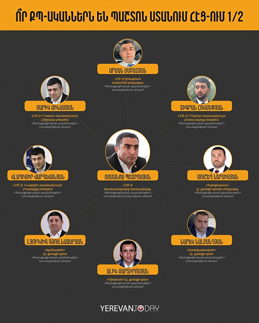 Նախորդ ինֆոգրաֆիկայում անդրադարձել ենք նորանշանակ ՔՊ-ականների մի մասին։ Այժմ հրապարակում ենք այլ ՔՊ-ականների անուններ, որոնք աշխատանքի են անցել ՀԷՑ-ում։