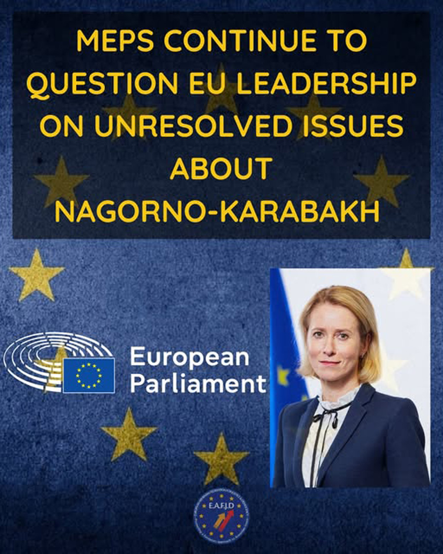 Եվրախորհրդարանի պատգամավորների մի խումբ՝ Թեյս Ռոյտենը (Սոցիալ-դեմոկրատ), Մարի Տուսենը (Կանաչներ/ԵՄ), Խուան Ֆեռնանդո Լոպես Ագիլարը (Սոցիալ-դեմոկրատ) և Նաչո Սանչես Ամորը (Սոցիալ-դեմոկրատ), հարց են ներկայացրել Եվրոպական հանձնաժողովի փոխնախագահ, ԵՄ արտաքին գործերի և անվտանգության քաղաքականության հարցերով բարձր ներկայացուցիչ Կայա Կալլասին՝ «Լեռնային Ղարաբաղից տեղահանված անձանց և ռազմագերիների չլուծված իրավիճակը խաղաղության համաձայնագրից հետո» թեմայով։