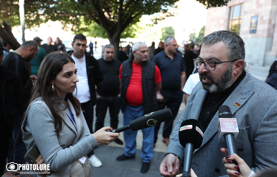 Member of the National Assembly of the Republic of Armenia Garnik Danielyan is present at the drivers’ protest near the Government Building of Armenia. Yerevan, Armenia