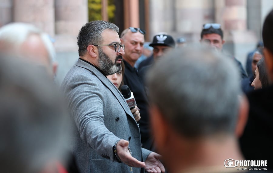 Member of the National Assembly of the Republic of Armenia Garnik Danielyan is present at the drivers’ protest near the Government Building of Armenia. Yerevan, Armenia