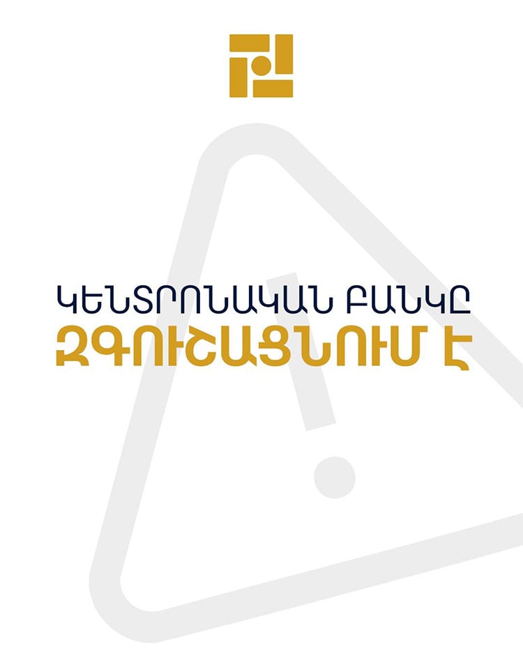 Զեղծարարություններից և ֆինանսական կորուստներից խուսափելու նպատակով քաղաքացիներին հորդորում ենք զգոն լինել և օգտվել բացառապես ՀՀ կենտրոնական բանկի կողմից լիցենզավորված ֆինանսական ծառայություններ մատուցող կազմակերպություններից: