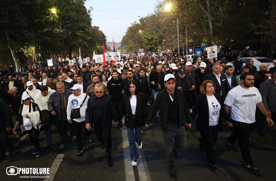 Ինչպես արդեն տեղեկացրել ենք, հանրահավաքի մասնակիցներն այս պահին երթ են իրականացնում, որը գլխավորում են Սամվել Կարապետյանի ընտանիքի անդամները՝ կինը, որդին, եղբայրը։