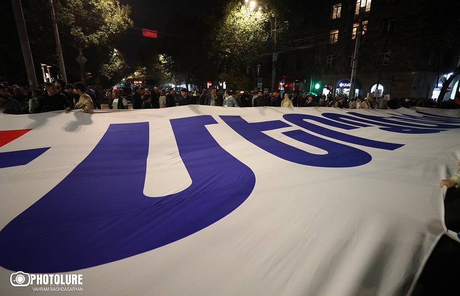 Participants of the Merdzevov popular movement are marching through the streets of Yerevan from Freedom Square, accompanied by family members of Samvel Karapetyan. Yerevan, Armenia