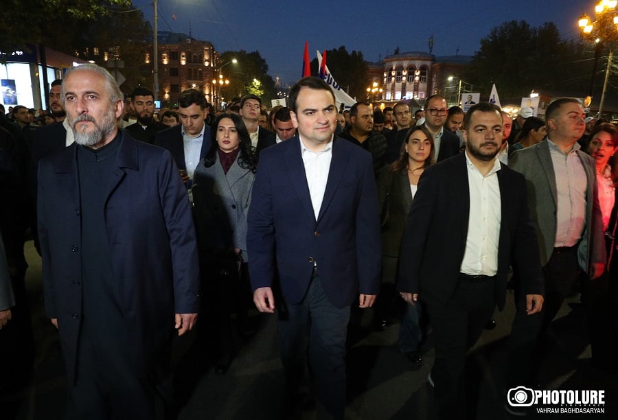 Participants of the Merdzevov popular movement are marching through the streets of Yerevan from Freedom Square, accompanied by family members of Samvel Karapetyan. Yerevan, Armenia