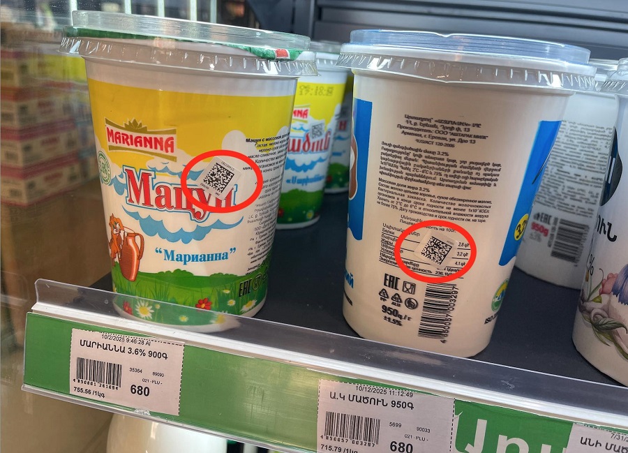 Դրանցից առաջինն, ըստ նրա, QR կոդերի կիրառումն է, որի նպատակն է վերահսկել ապրանքի իրացման ողջ շղթան։ Կաթնամթերք արտադրողները եկող տարվա հունվարի 1-ից պարտավոր են իրենց արտադրանքի վրա հսկիչ QR կոդեր փակցնել։ Սա Կառավարության որոշումն է, որը ընդունվել է դեռևս 2024-ի օգոստոսին։