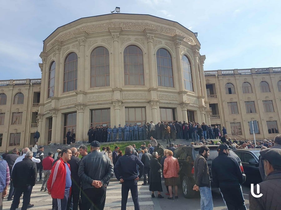 Քաղաքացիները քաղաքապետարանի տարբեր մուտքերից փորձում են մտնել քաղաքապետարանի շենք, մեծ թվով ոստիկաններ շրջափակել են նաև այդ մուտքերը, որպեսզի չկարողանան տանել քաղաքապետին։