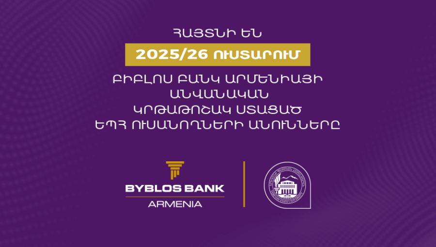 Հայտնի են 2025-2026 ուստարում Բիբլոս Բանկ Արմենիայի անվանական կրթաթոշակի արժանացած ԵՊՀ 5 ուսանողների անունները․ յուրաքանչյուրը կստանա 1 միլիոն դրամ։