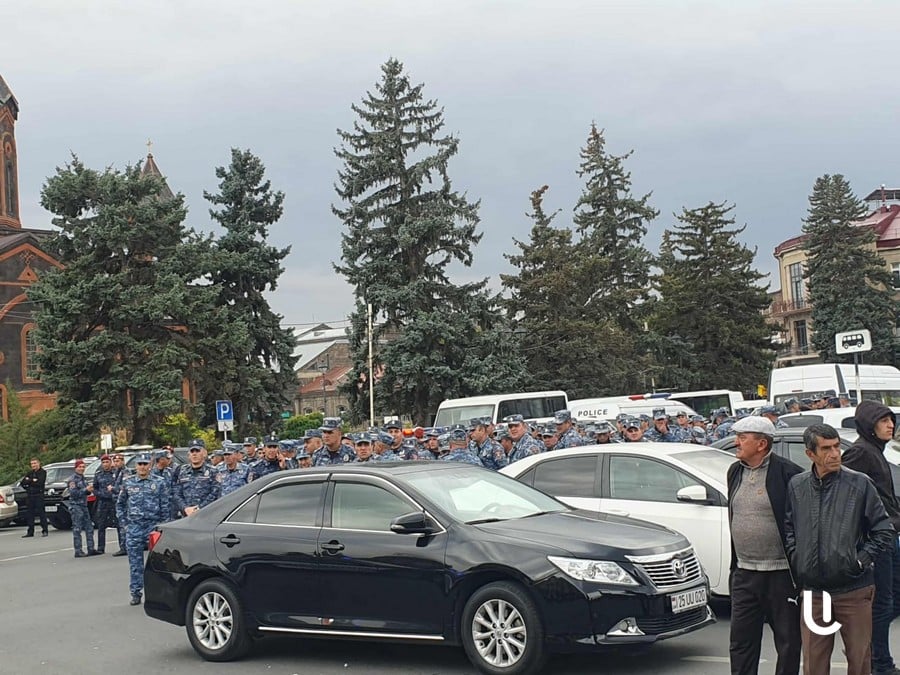 Գյումրու Վարդանանց հրապարակում ոստիկանական մեծ ուժեր են կուտակված, հենց նոր տեղեկացանք, որ ոստիկանական նոր ուժեր են մտել քաղաքապետարան։