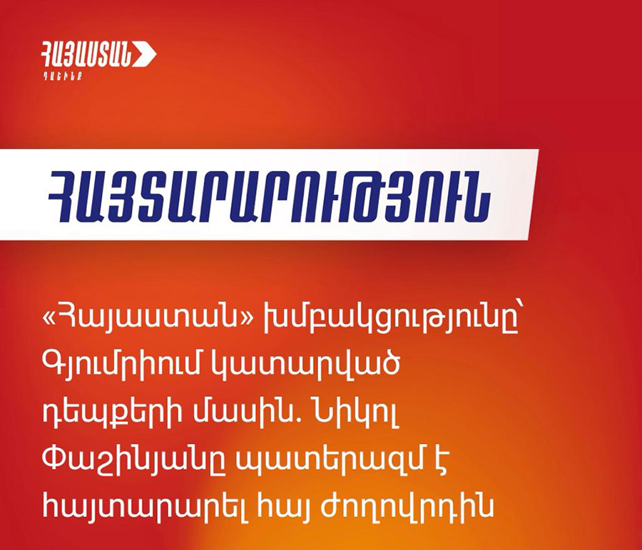 Գյումրիում այսօր կատարվածը գործող վարչախմբի հերթական հարձակումն է ժողովրդի կամքի դեմ։ Ընտրված քաղաքապետ Վարդան Ղուկասյանի ցուցադրական ձերբակալությունը, Գյումրի քաղաքի ու համայնքապետարանի պաշարումը, ուժային համակարգի միջոցով հանրապետությունում վախի մթնոլորտ սերմանելու փորձերն ապացուցում են, որ գործող իշխանությունը չի հանդուրժում ժողովրդի ընտրությունը։