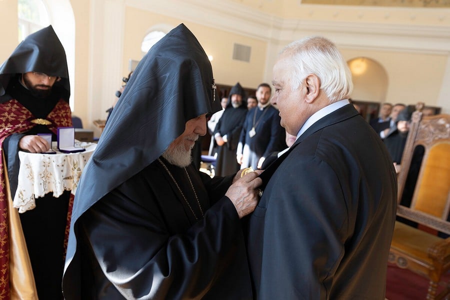 Կոնդակի ընթերցումից հետո Ամենայն Հայոց Կաթողիկոսը բարերար ամոլին հանձնեց Հայ Եկեղեցու բարձրագույն շքանշանը` վերստին բերելով Հայրապետական իր օրհնությունն ու բարեմաղթանքները: