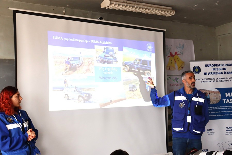 Առավոտը լի էր քննարկումներով, ժպիտներով և անկեղծ հետաքրքրությամբ, քանի որ աշակերտները ավելին իմացան Հայաստանում ԵՄ առաքելության աշխատանքի և նպատակի մասին», – նշված է X-ում Եվրոպական միության դիտորդական առաքելության գրառման մեջ։